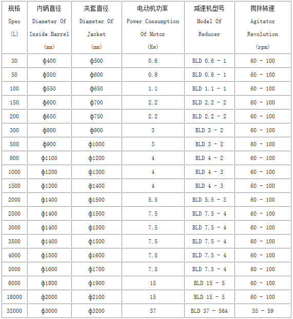 由于用戶因生產(chǎn)工藝、操作條件不盡相同,夾套加熱型式分為電熱棒加熱、蒸汽加熱、導(dǎo)熱油循環(huán)加熱,軸封裝置分為填料密封和機(jī)械密封,攪拌型式有錨式、漿式、渦輪式、推進(jìn)式或框式。開孔數(shù)量、規(guī)格或其它要求可根據(jù)用戶要求設(shè)計(jì)、制作。